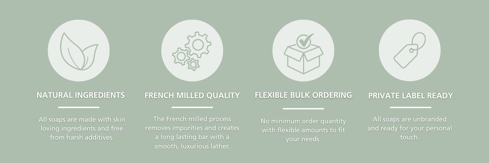 Explore our collection of natural and premium soap bars. All bars are unbranded and ready for packaging.
